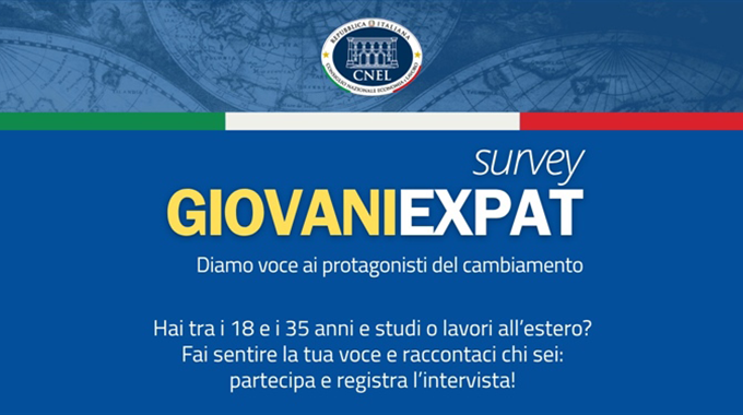 scorso autunno, il Consiglio Generale degli Italiani all’Estero sostiene l’iniziativa “Giovani Expat: diamo voce ai protagonisti del cambiamento” del Consiglio Nazionale dell’Economia e del Lavoro, per raccogliere le testimonianze dei giovani italiani tra i 18 e i 35 anni che studiano o lavorano all’estero.